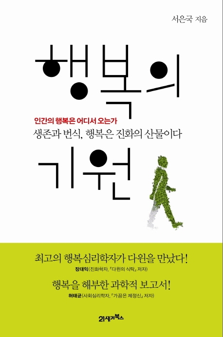 저자는 행복이 인간이 살아가는 목적이 아니고 수단이라고 단언한다. 저자는 다윈의 진화론을 근거로 인간은 지능이 높을 뿐 타조나 숭어와 본질적으로 다르지 않은 100% 동물이라는 것라는 결론에 다다른다. 이 동물인데 왜 행복을 느끼는 것일까? "행복의 기원"은 이 질문에 대한 답을 하고 있다.