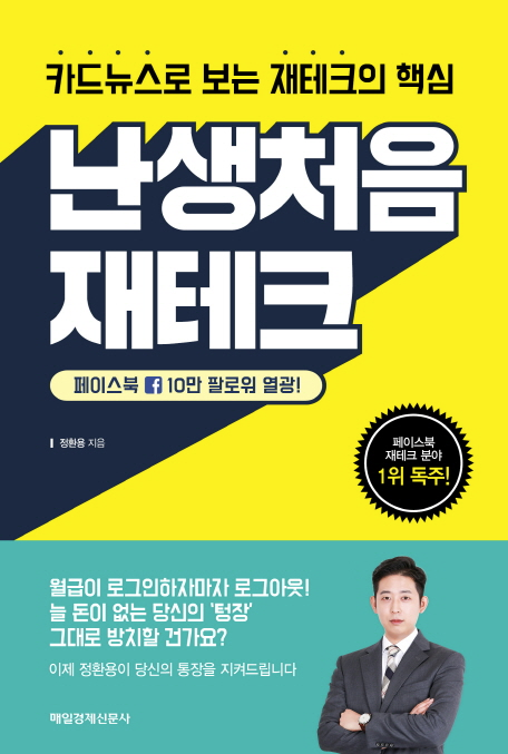 사회초년생들을 위한 재테크 책은 많습니다. 하지만 정말 사회물정 모르는 친구들에게는 첫 페이지부터 보이는 어려운 용어와 너무나 길 글 때문에 책을 읽다 몇 페이지 못넘기고 덮어 버리거나, 겨우겨우 읽어도 머리속에 남지 않는 경우가 허다합니다. 그런 분들에게 <난생처음 재테크> 책을 추천합니다. 저자는 한때 대부업체까지 이용했을 정도로 경제관념이 없었지만, 돈을 많이 버는 데 그치지 않고 잘 키워 나가고 싶어 금융업계에 겁도 없이 뛰어 들었습니다. 그렇게 재무설계사가 되어 밑바닥에서부터 겪은 경험으로 얻은 재테크 노하우를 페이스북에 올리기 시작했고 현재는 10만 팔로워가 넘는 인플루언서가 되었습니다. 긴 글과 표가 아닌 카드뉴스 형식으로 만들어진 컨텐츠를 모아 책으로 엮었습니다. 카드뉴스 형식으로 만들어진 이 책은 재테크에서 사회초년생들이 꼭 해야 할 일과 해서는 안 될 일, 통장 잔고 0원에서 시작할 수 있는 통장 관리법, 돈을 불리기 위해 알아야 할 다양한 금융상품(통장, 체크카드 등)에 대한 소개 등 실용적인 재테크 팁을 담고 있습니다.