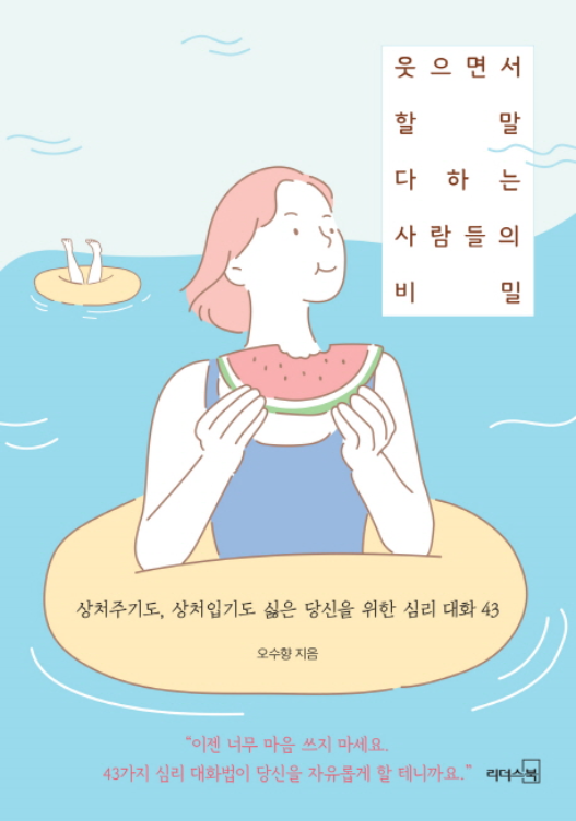 국내 최고의 심리 대화 전문가 오수향 교수가 알려주는 43가지 건강한 대화법을 소개합니다. 보통 같은 말도 상황에 따라, 기분에 따라 완전히 다르게 전달되기도 하며, 웃으며 할 말 다하면서도 원하는 것을 얻는 사람들이 있습니다. 심리 대화법 전문가인 저자는 그 비밀이 심리 대화에 있다고 말하고 있습니다. 상대의 허한 마음, 작은 틈새를 읽고 거기에 맞게 부드럽게 유도하는 대화의 기술로 감정노동 없이 원하는 것을 얻을 수 있다고 이야기합니다. 그러면서 일상의 심리 대화법, 관계 회복의 심리 대화법, 설득과 호응의 심리 대화법, 연인과의 심리 대화법, 지갑을 열게 하는 심리 대화법, 성과와 능률을 높이는 심리 대화법을 소개합니다. 이 책에는 모두 43가지의 심리 대화법을 통해 듣는 사람도 말하는 사람도 부담 없이 좋은 결과를 이끌어낼 수 있도록 도와주고 있습니다.